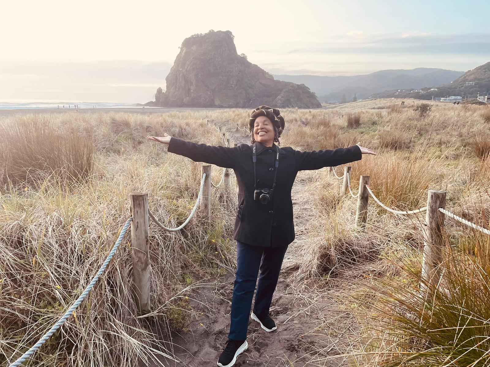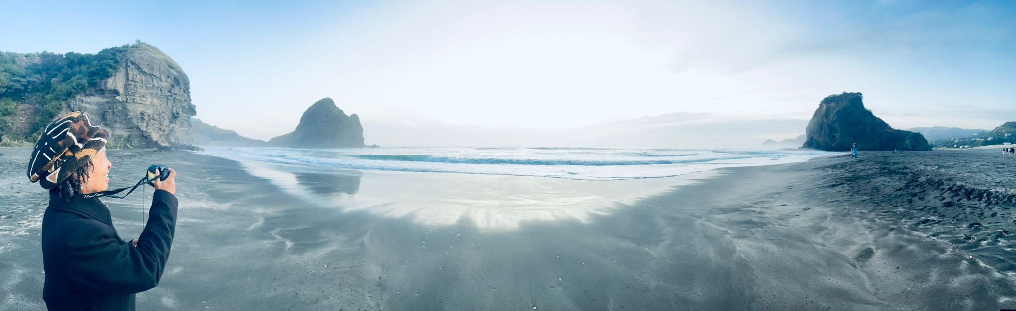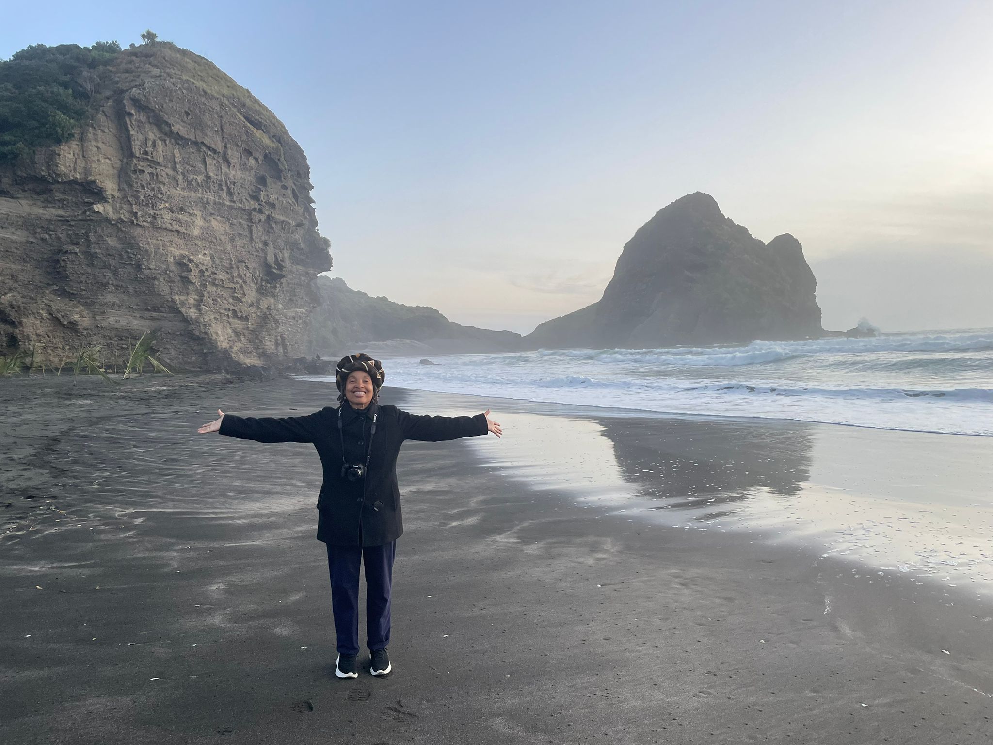 - Me on Piha Beach in front of Lion Rock in Auckland, NZ